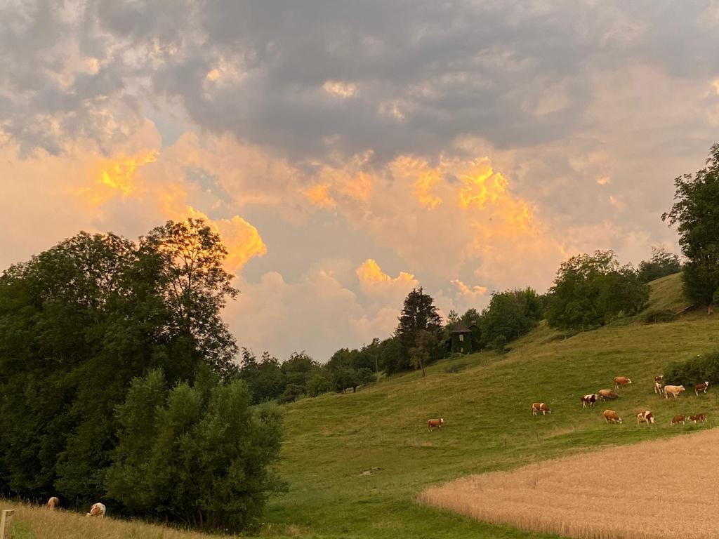 Nicolas, dont le sourire et les yeux rieurs illuminent votre journée, est un amoureux de la vie avec un entrain et une énergie débordante communicatifs. Il a grandi sur l’exploitation de ses parents à Forel, à 720 m d’altitude dans la zone des collines, exploitation qu’il a reprise en 2014. Il est l’aîné d’une fratrie de trois et c’est le seul qui a choisi la terre pour en faire son métier. Il a fini son CFC agricole en 2003, dont il a fait la partie pratique entièrement en Suisse alémanique à Berne (Wimmis et Liebewil), et la partie théorique à Grange-Verney (Moudon). Il a poursuivi avec l’armée, dans la fanfare militaire (bien sûr 🙂 ).
